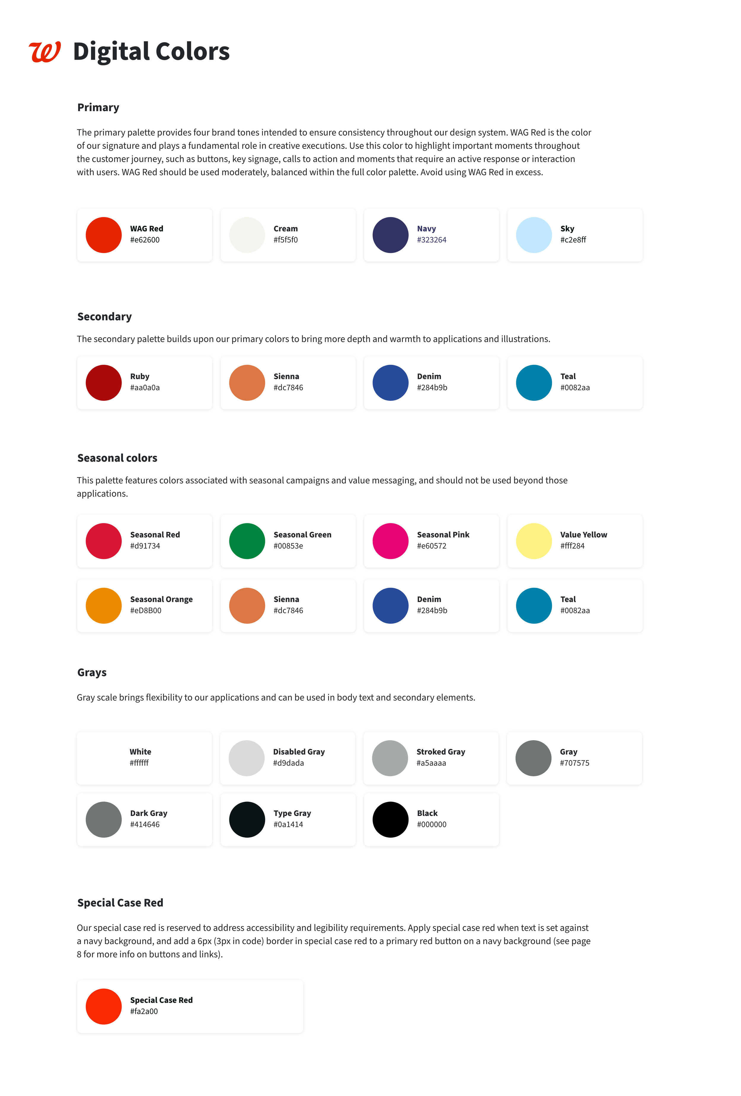 Global Components: Defined digital colors, typography, and graphic standards for Walgreens.com.