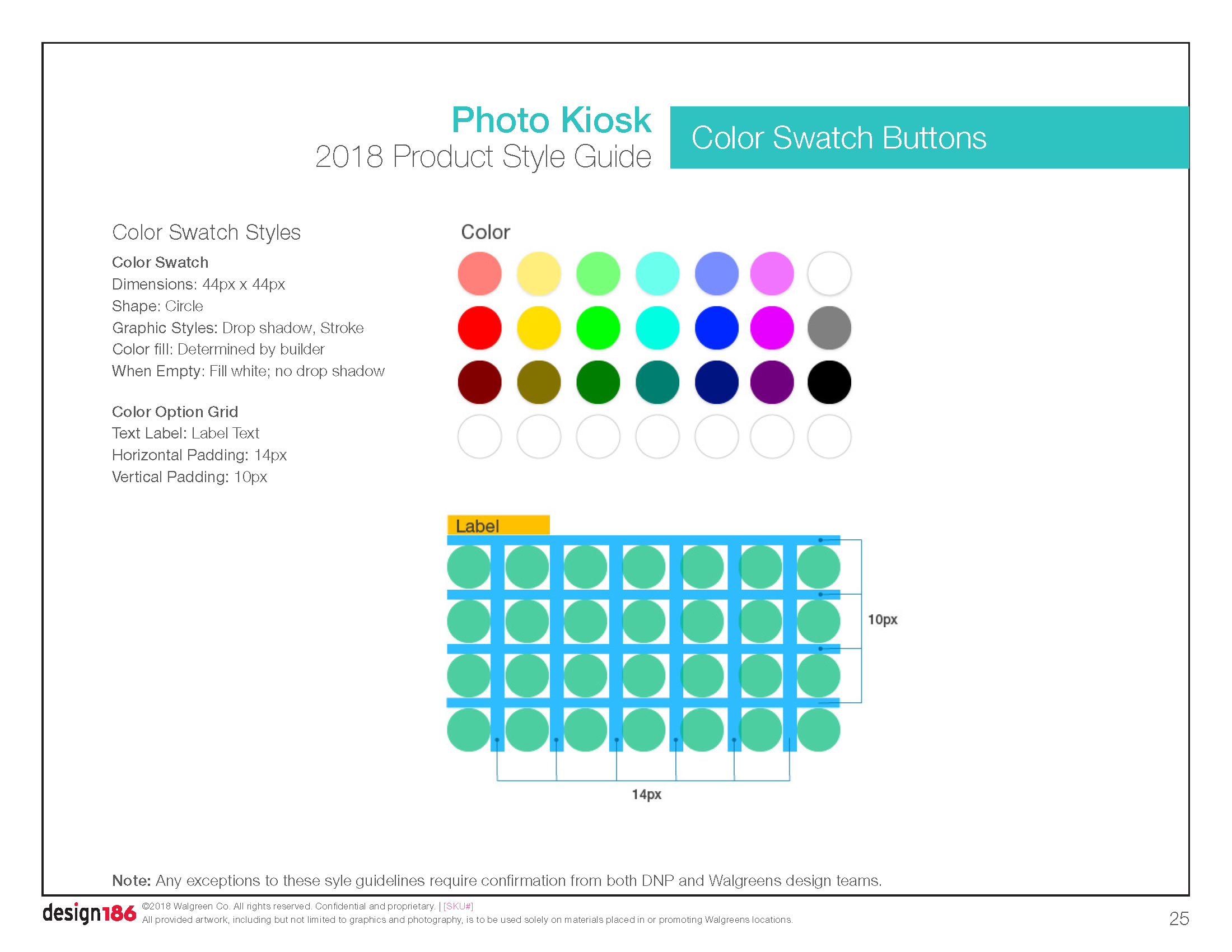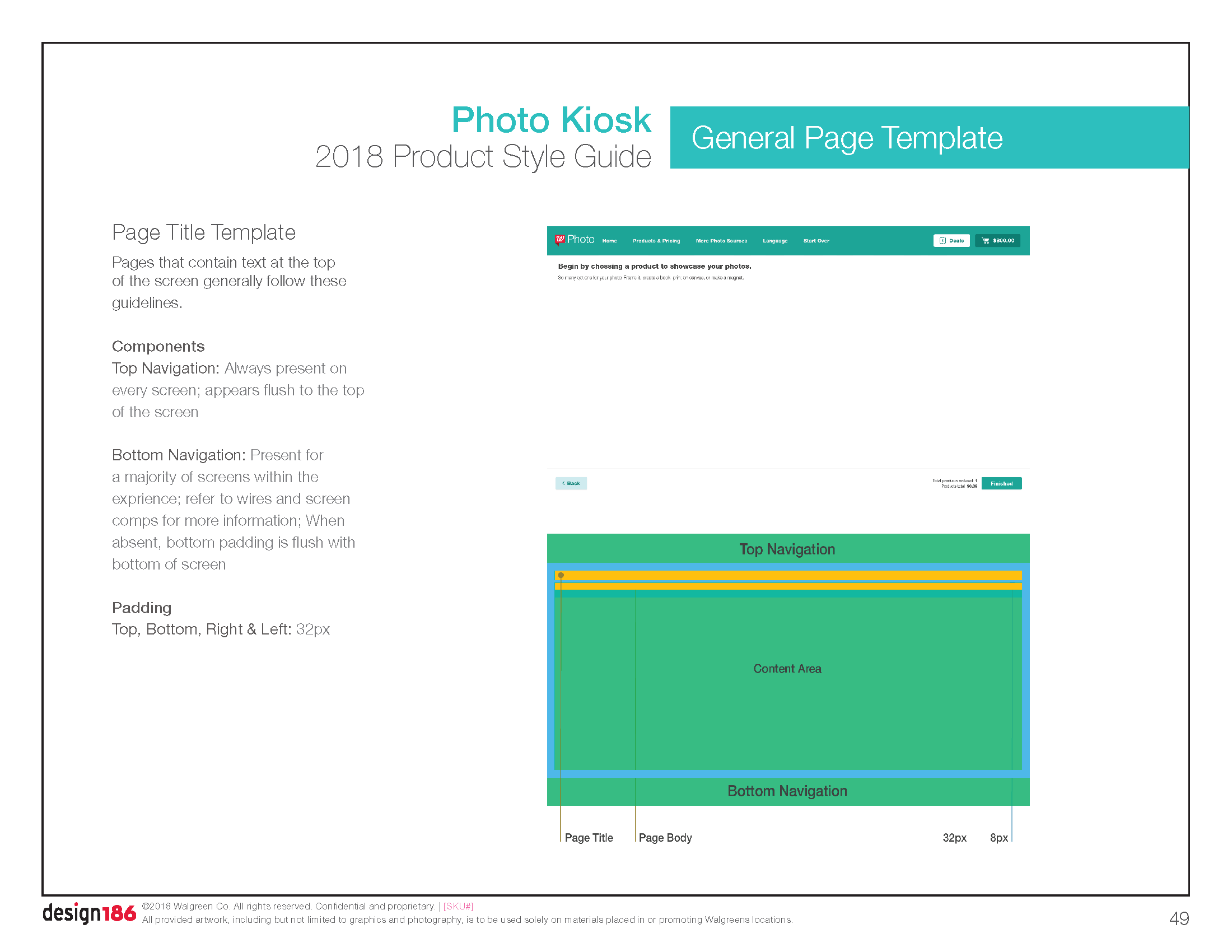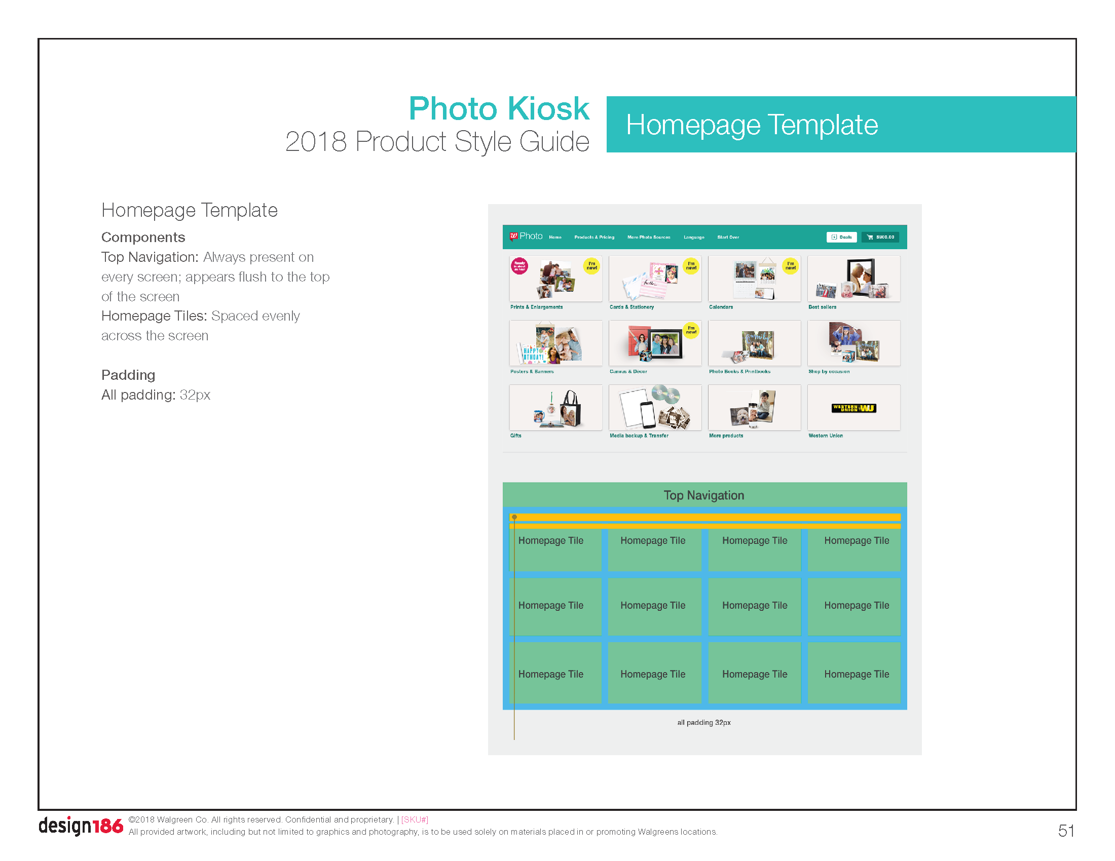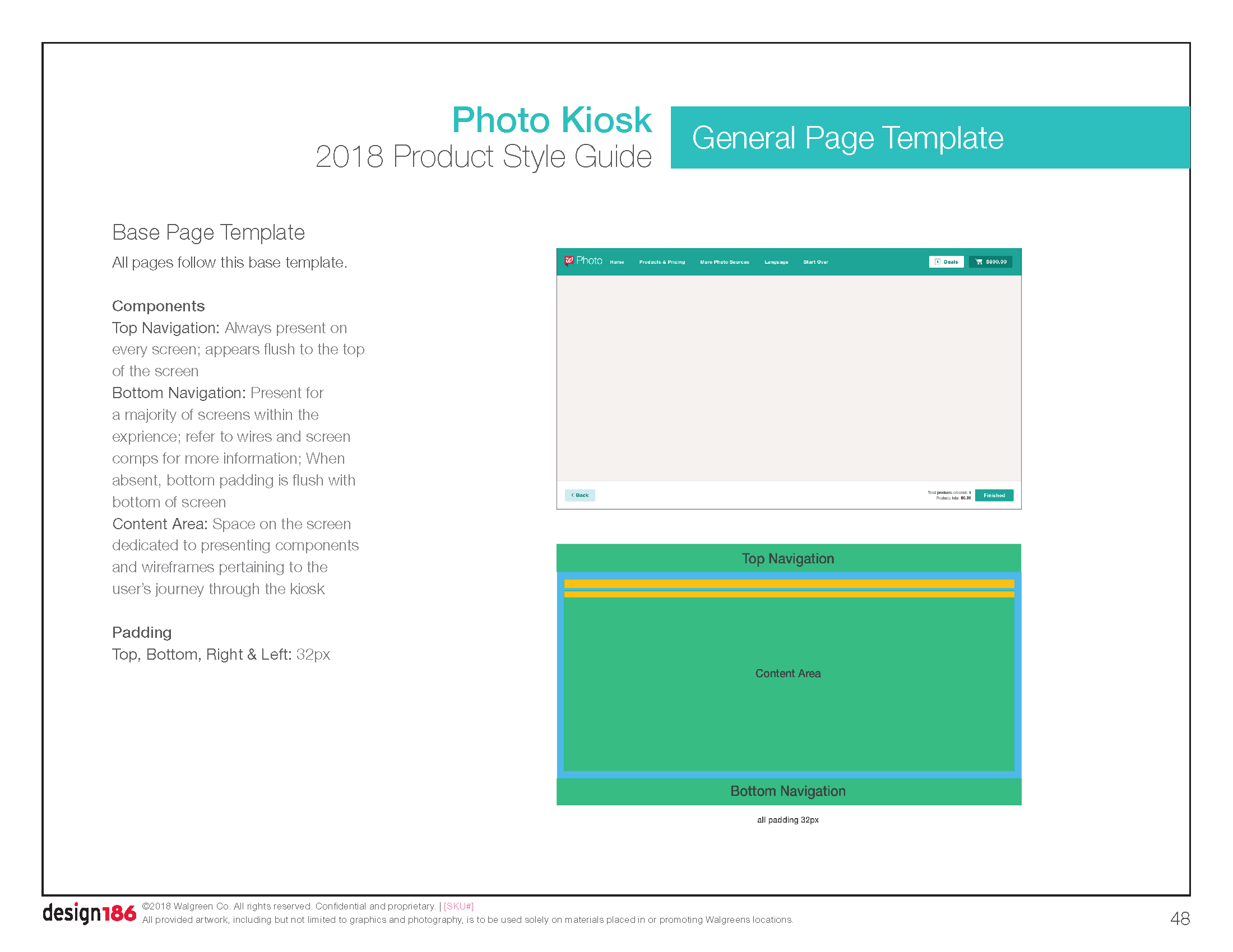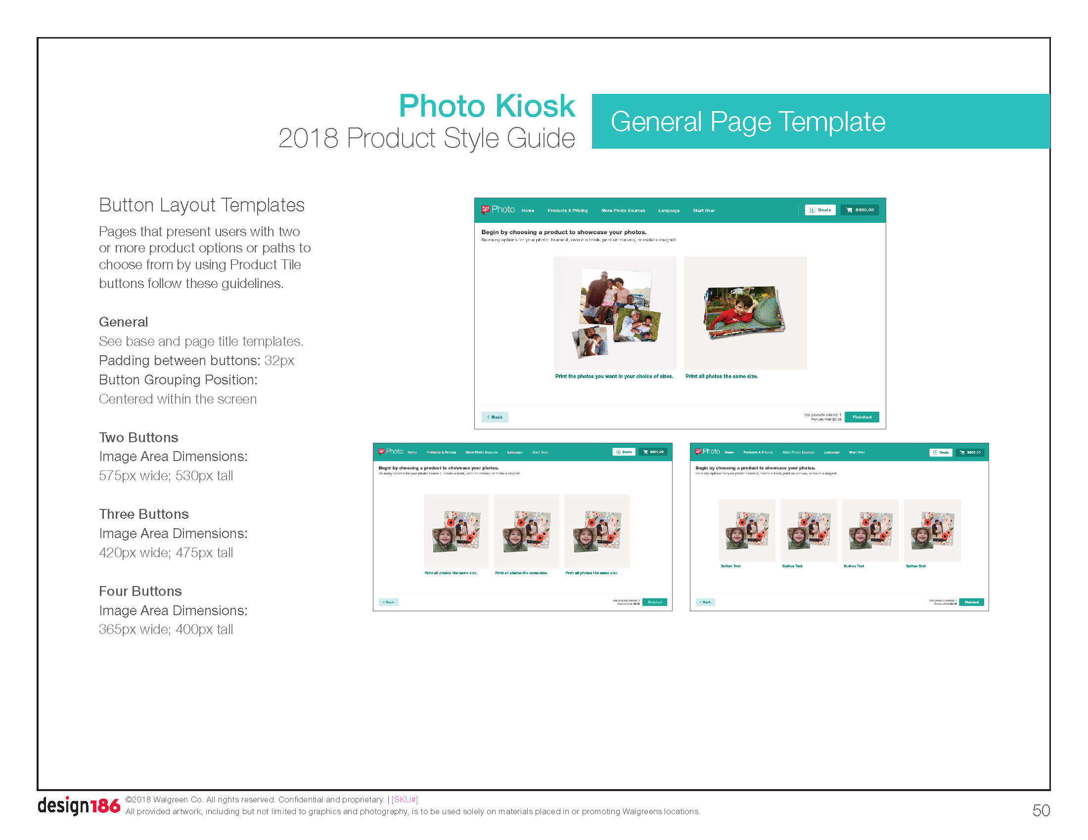 Created a comprehensive style guide to standardize the Photo Kiosk product’s design language across UI elements, voice, and templates.
