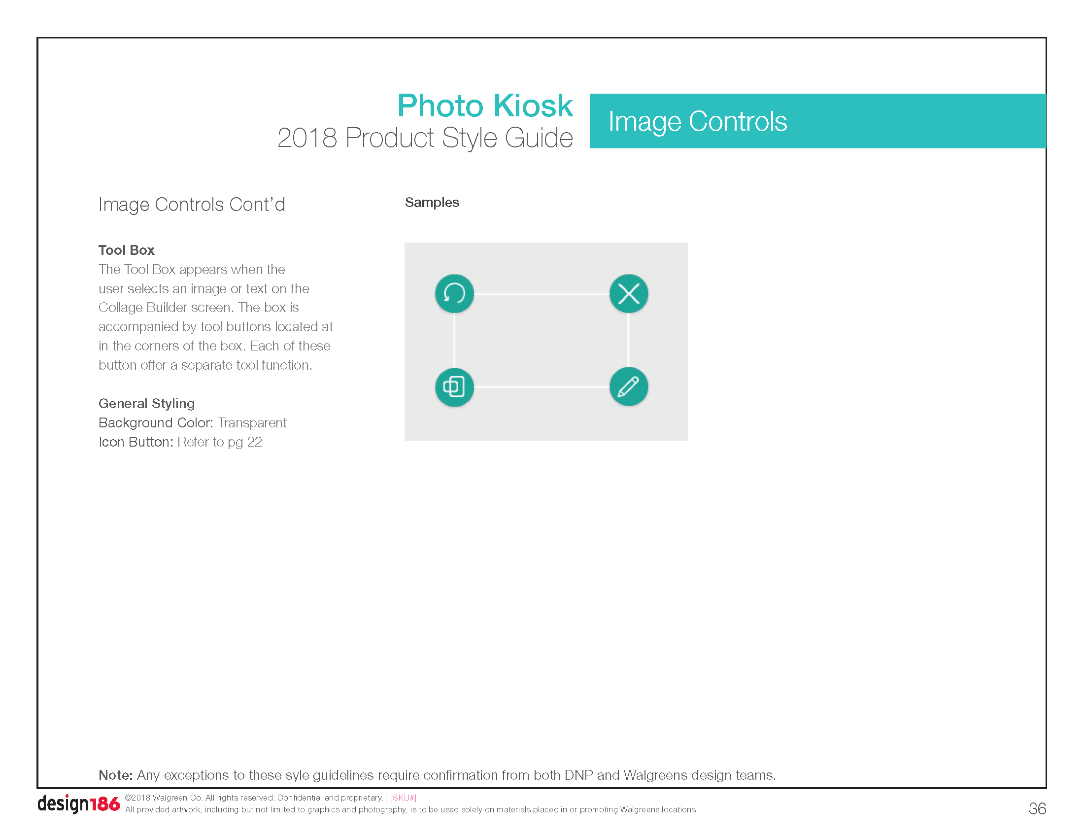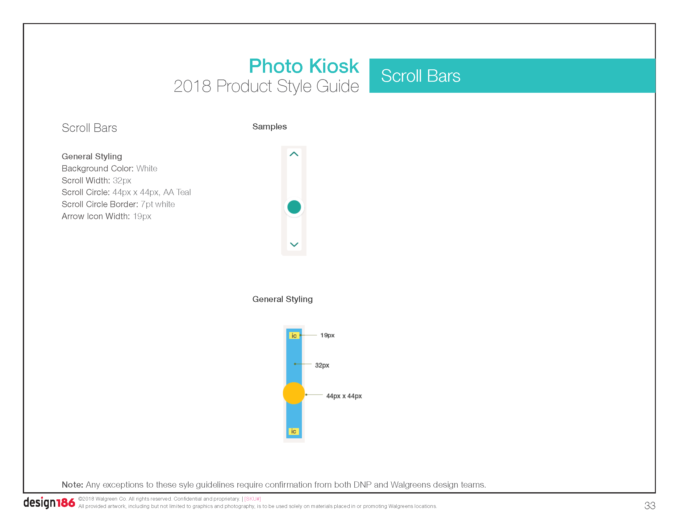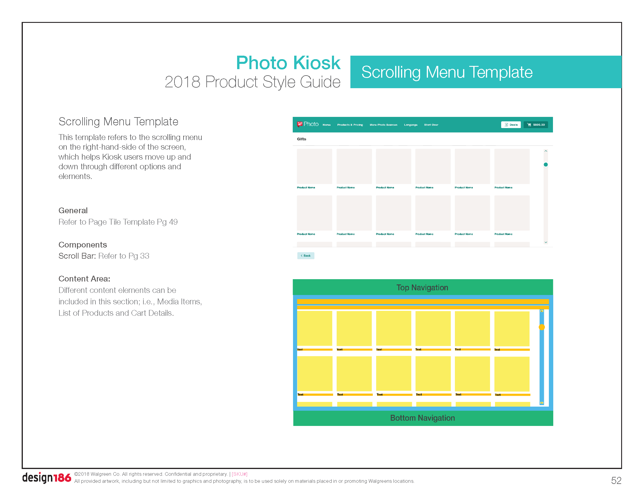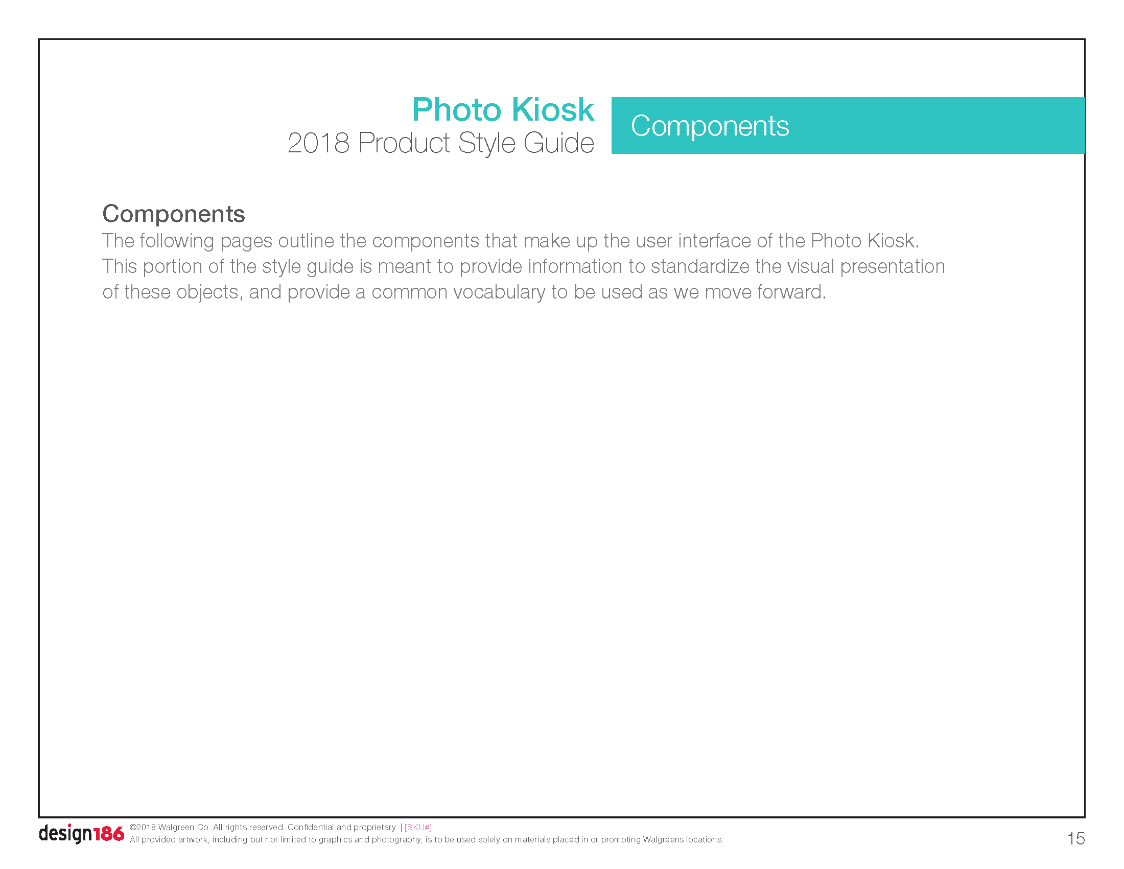 Created a comprehensive style guide to standardize the Photo Kiosk product’s design language across UI elements, voice, and templates.