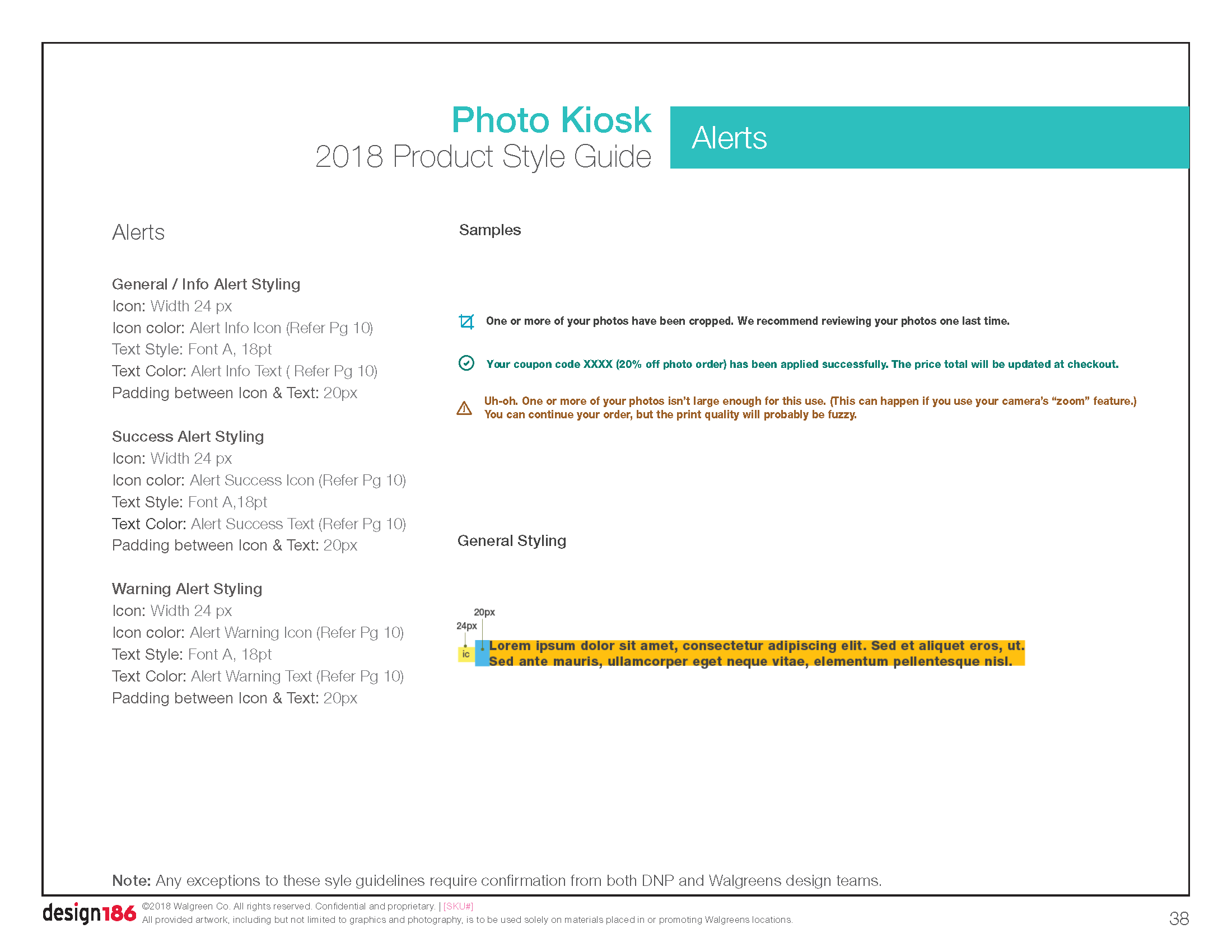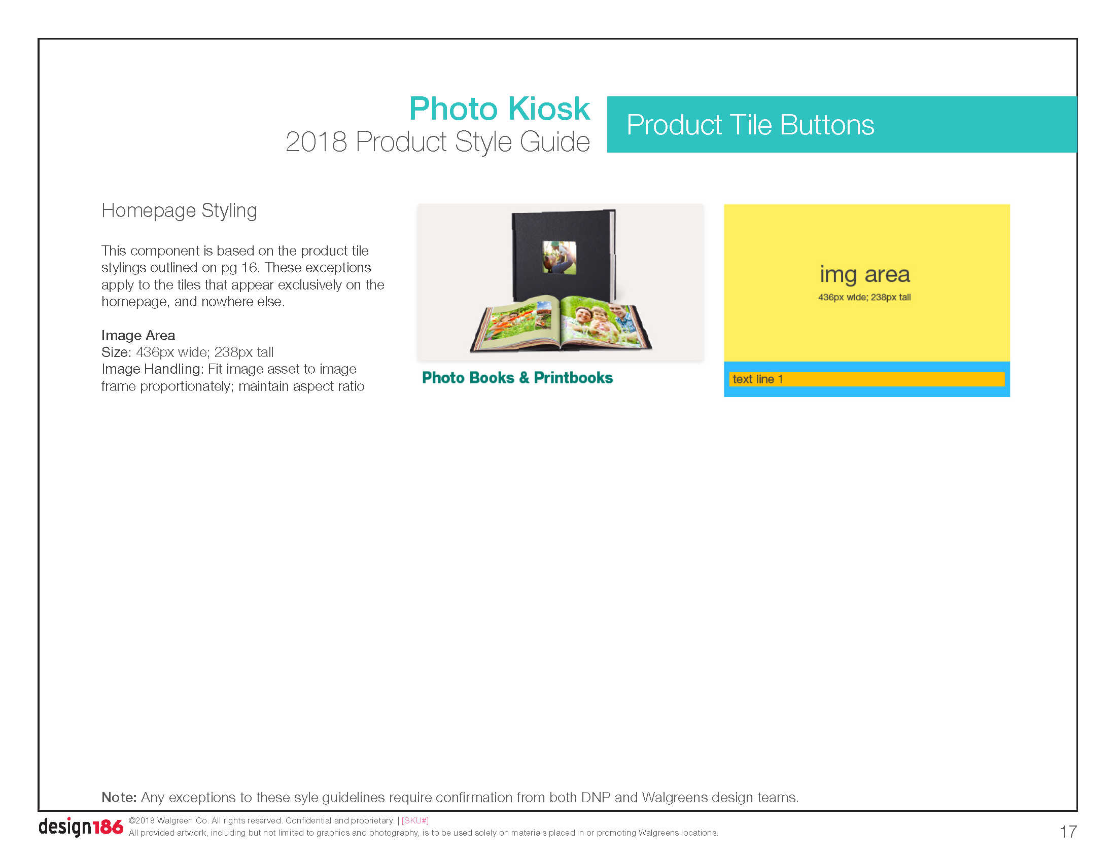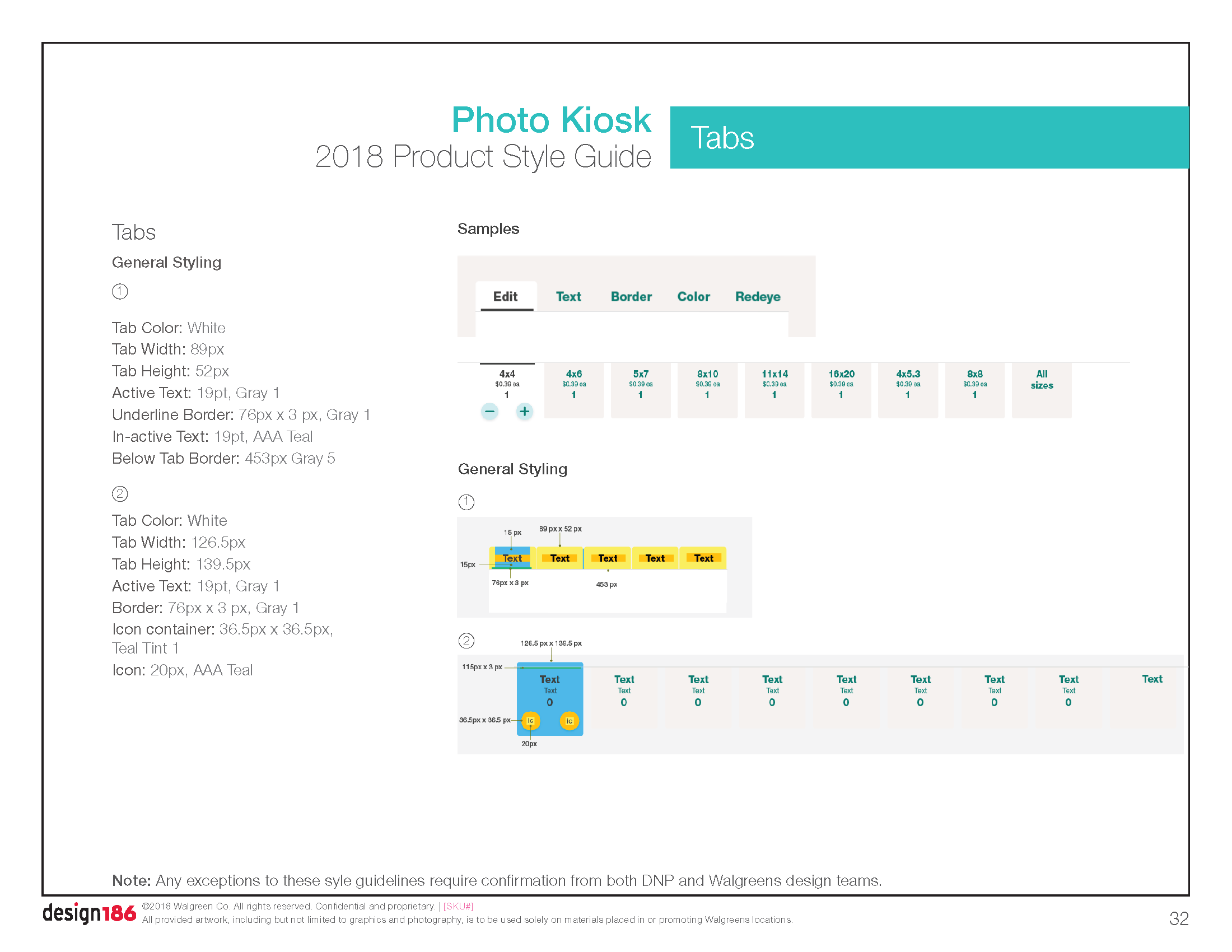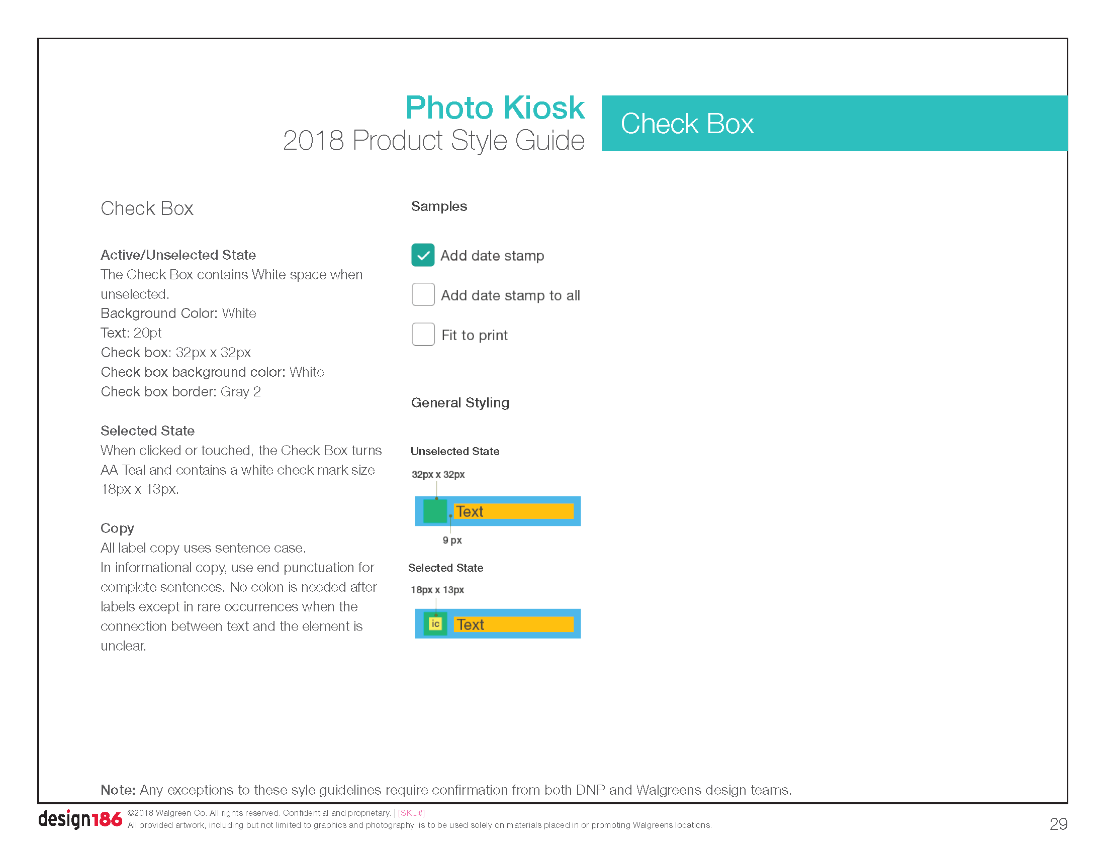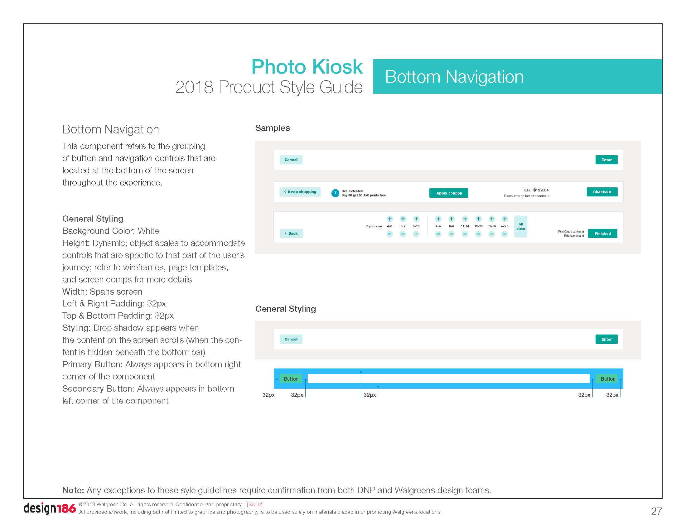 Created a comprehensive style guide to standardize the Photo Kiosk product’s design language across UI elements, voice, and templates.