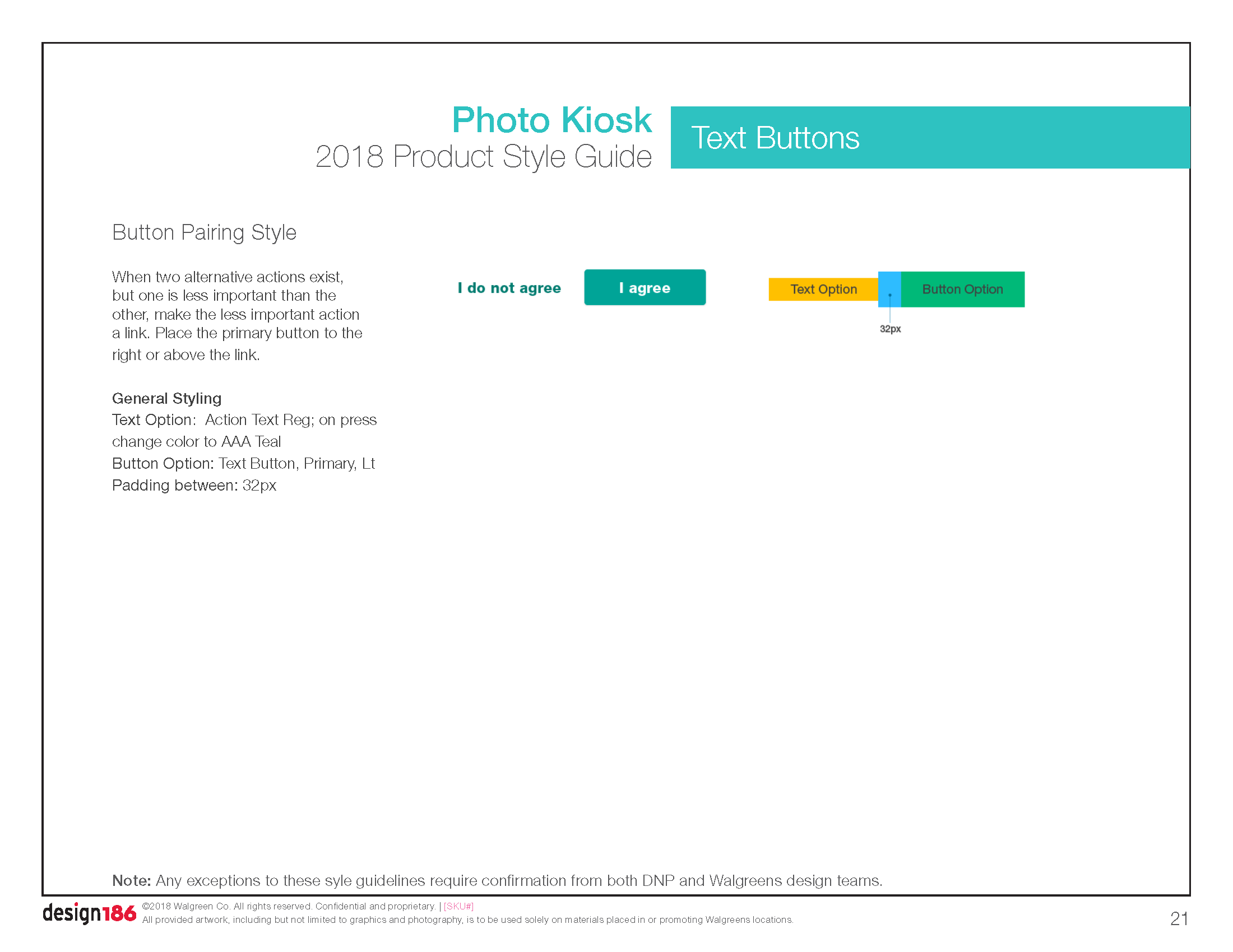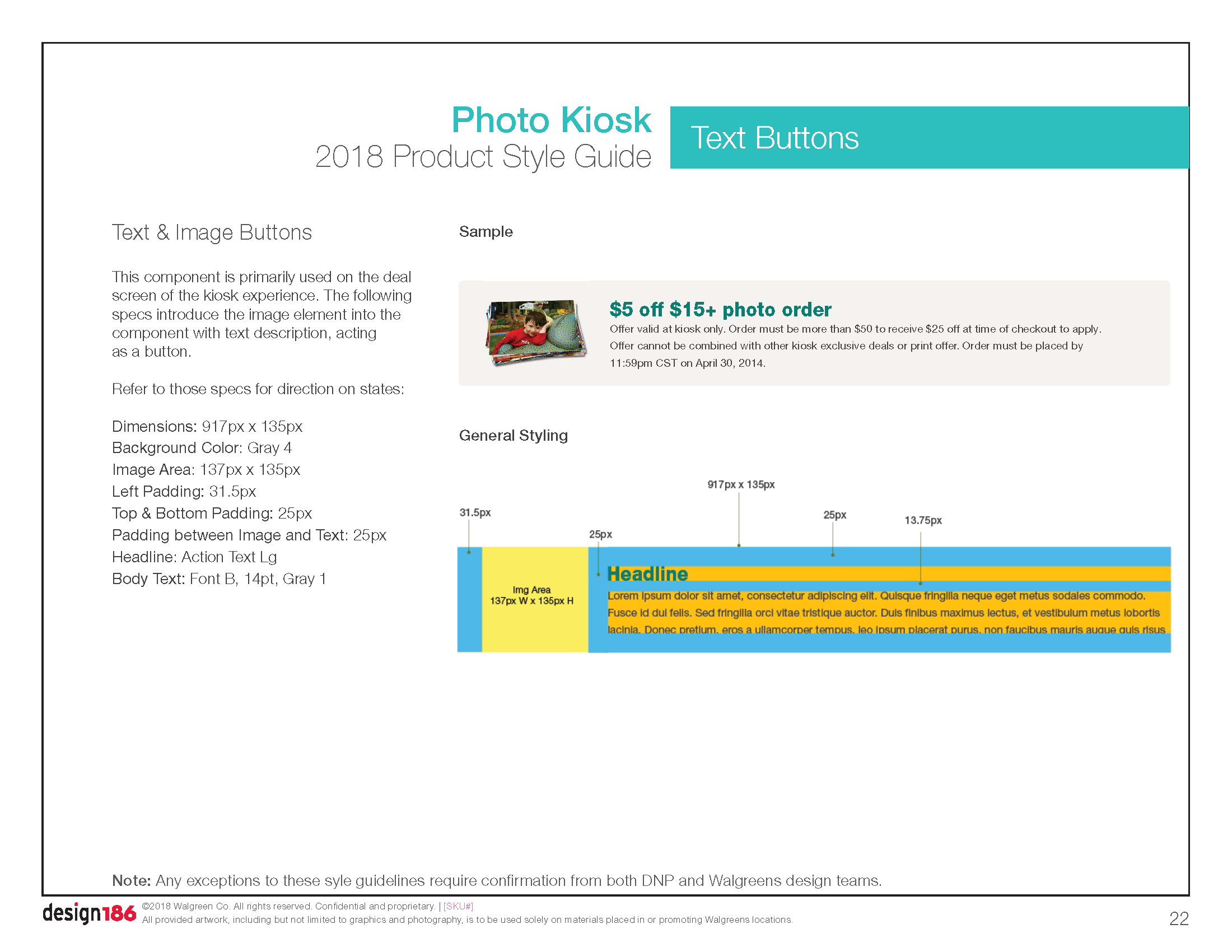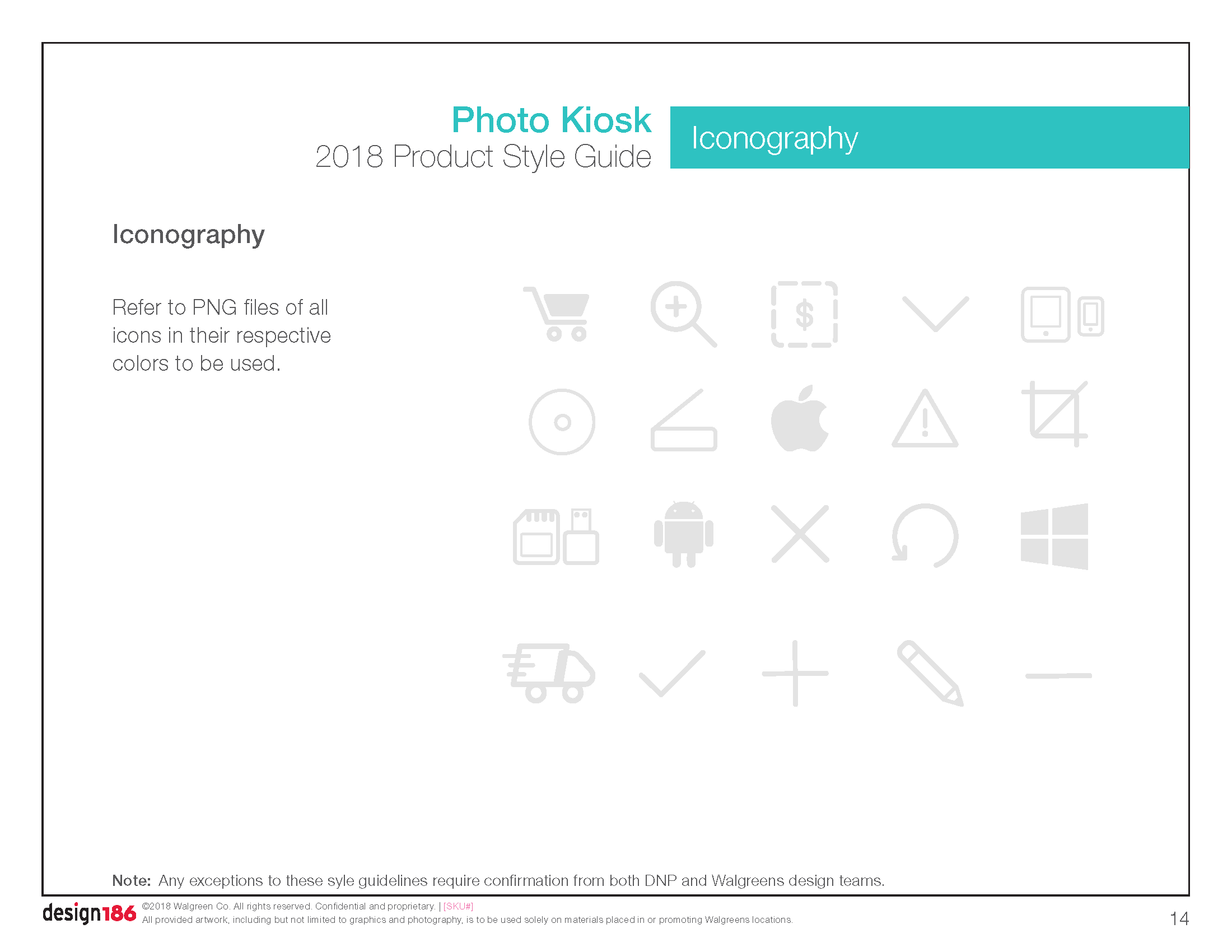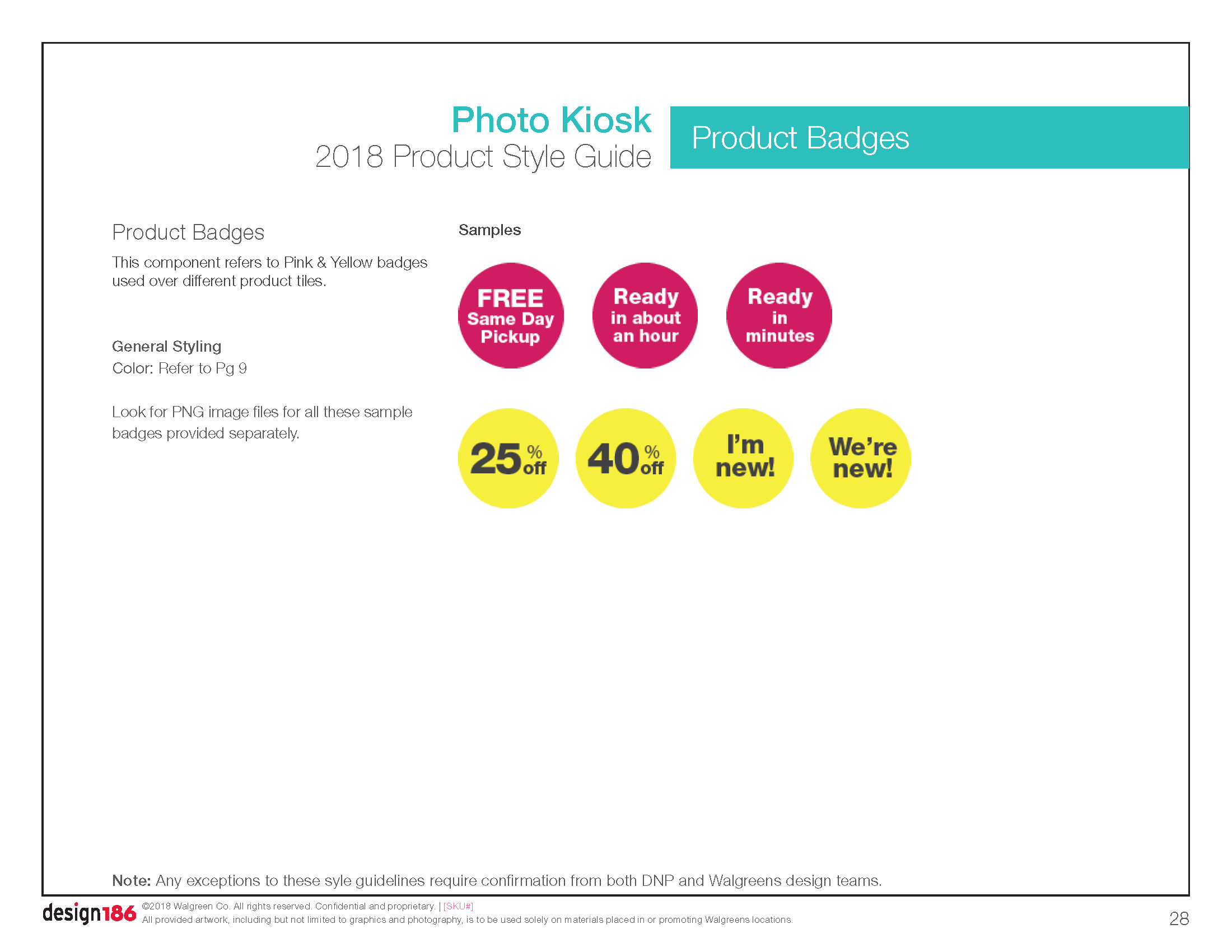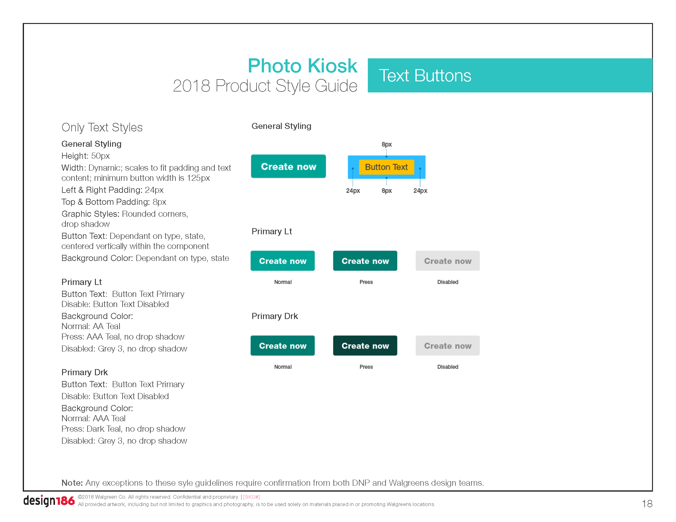 Created a comprehensive style guide to standardize the Photo Kiosk product’s design language across UI elements, voice, and templates.