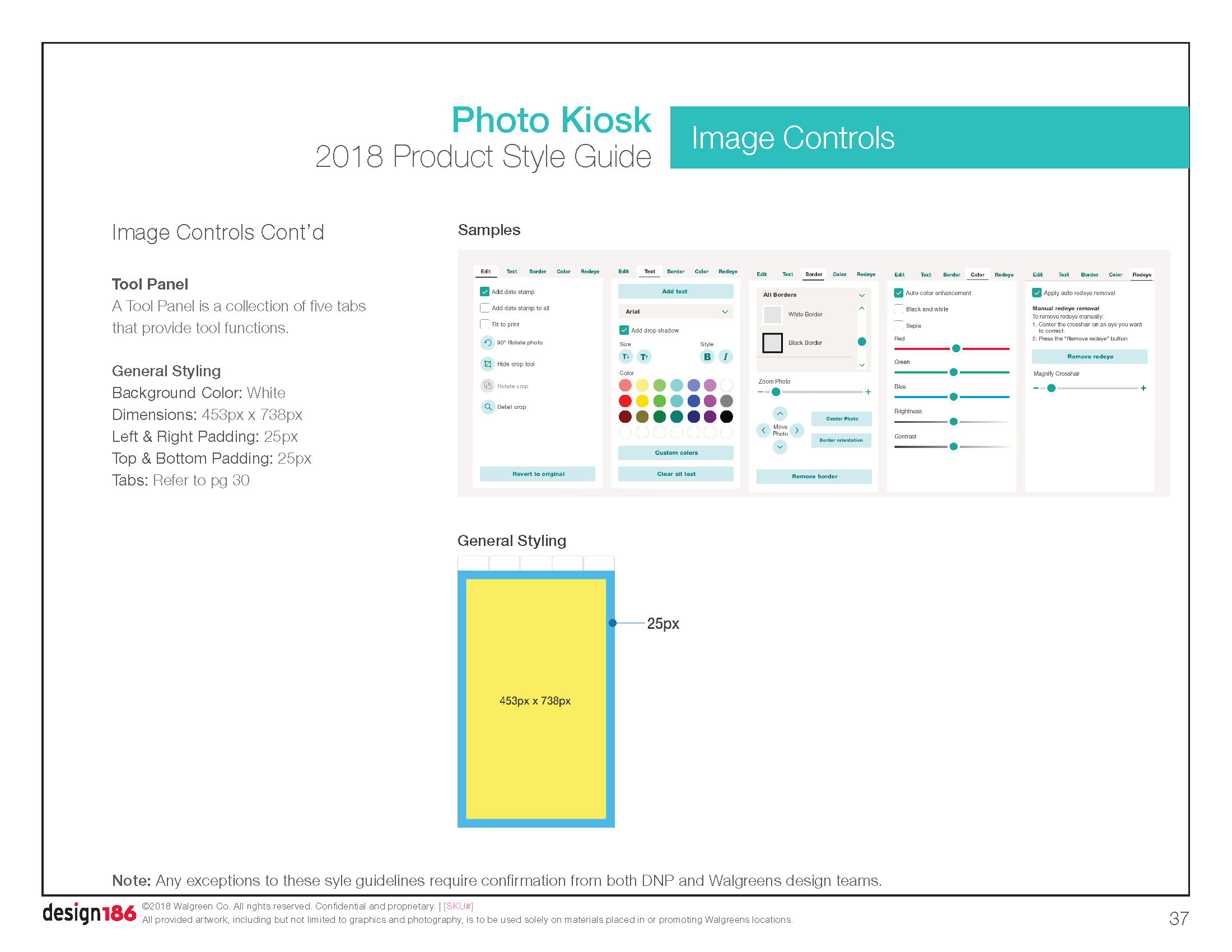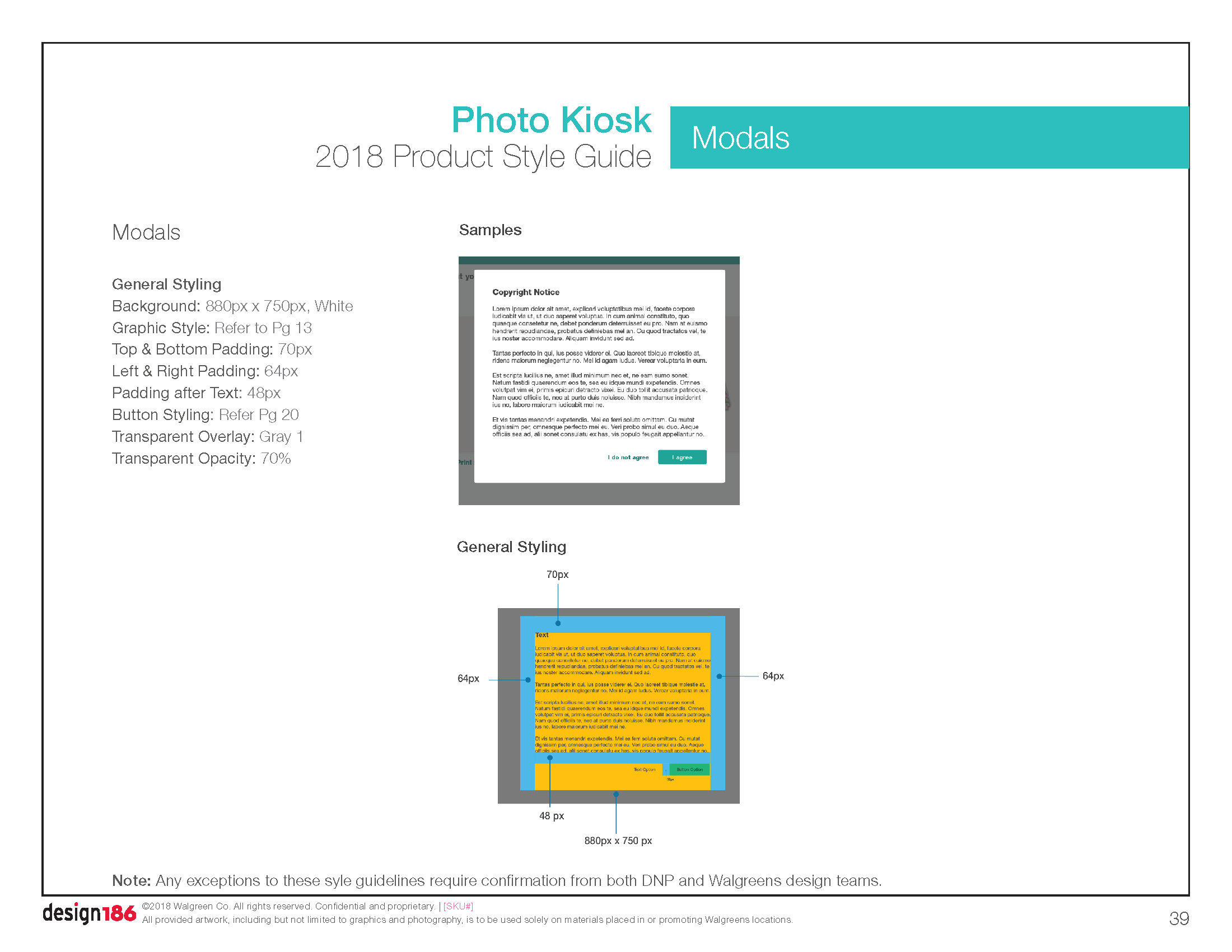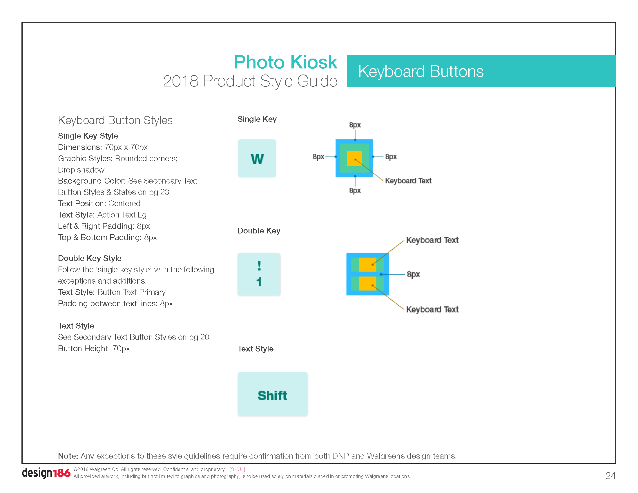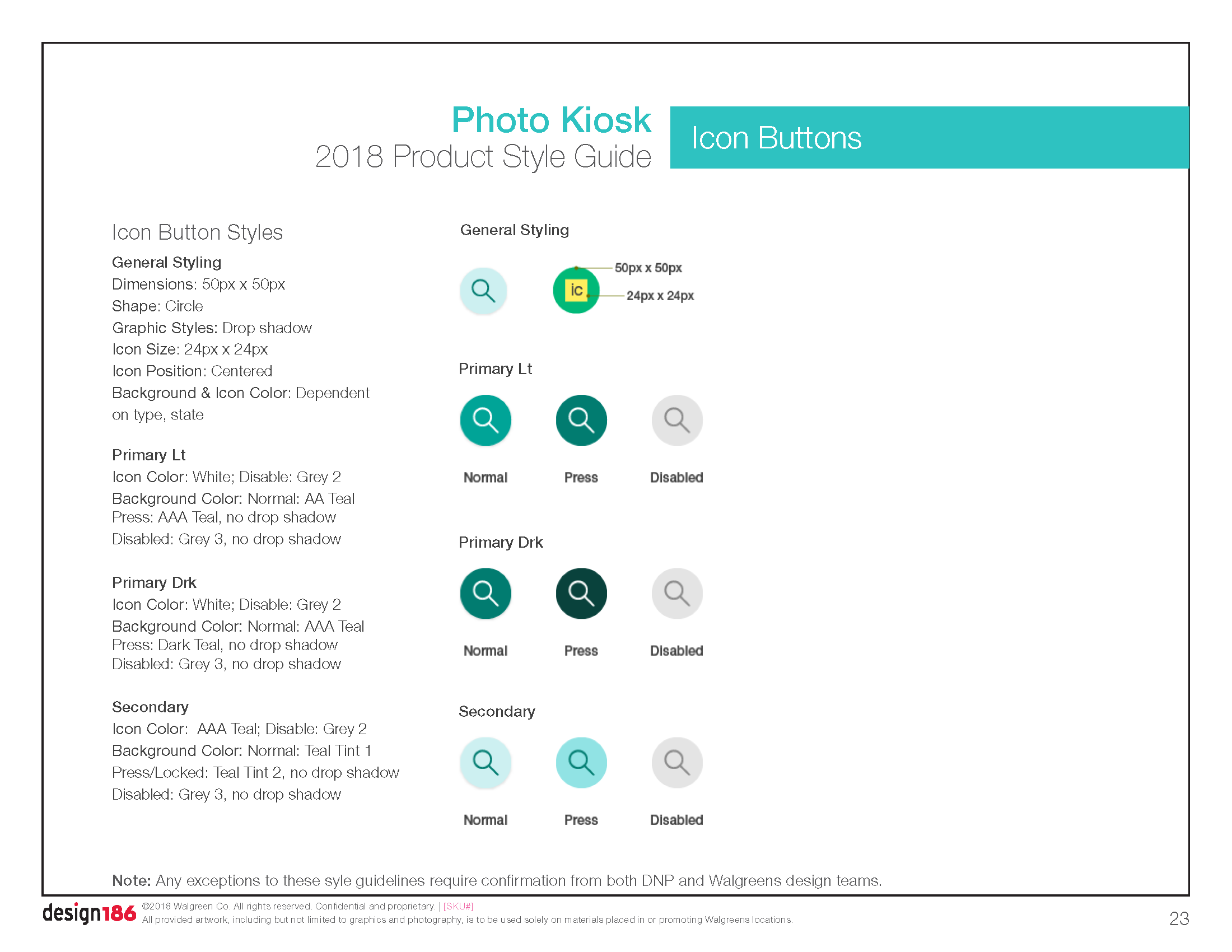 Created a comprehensive style guide to standardize the Photo Kiosk product’s design language across UI elements, voice, and templates.
