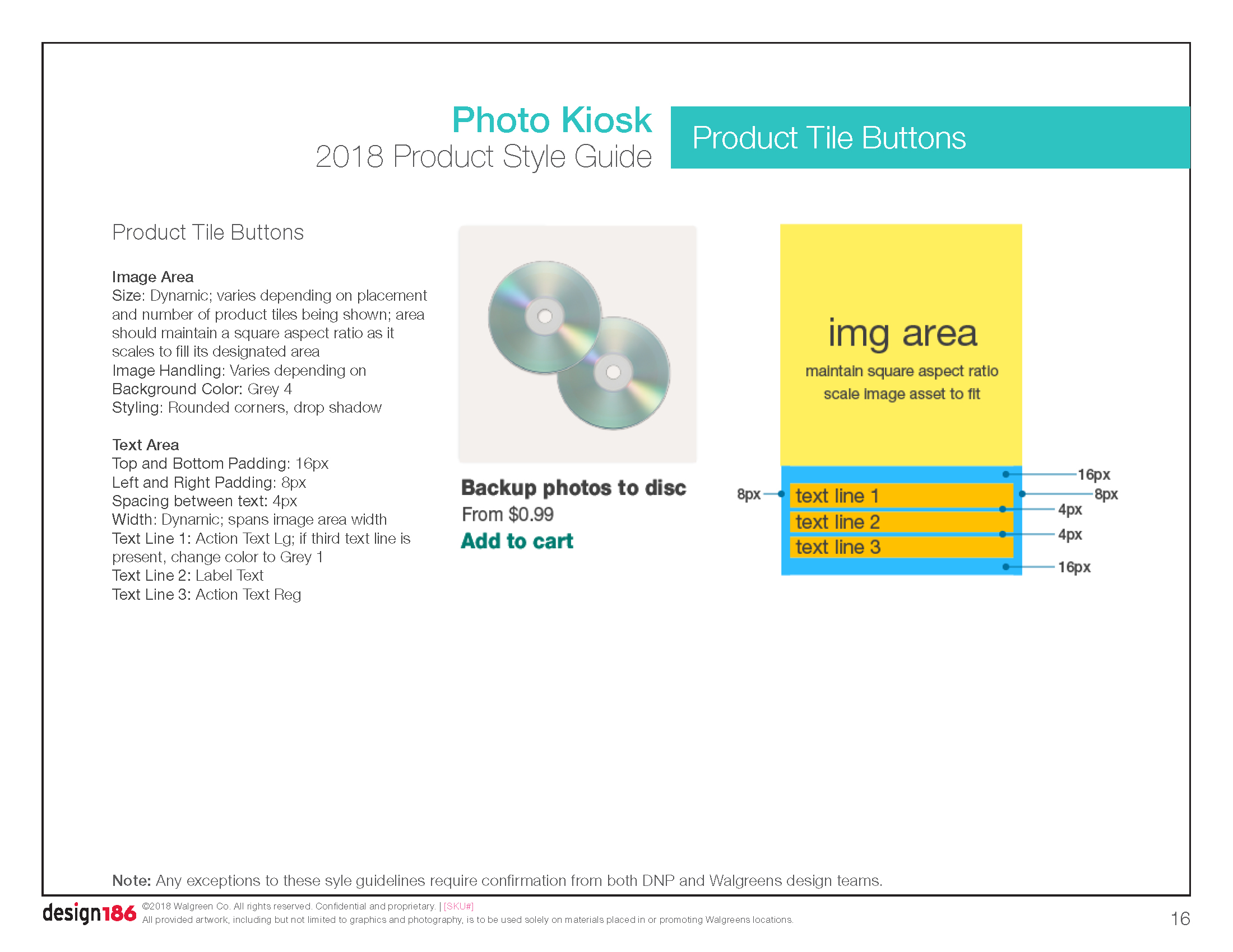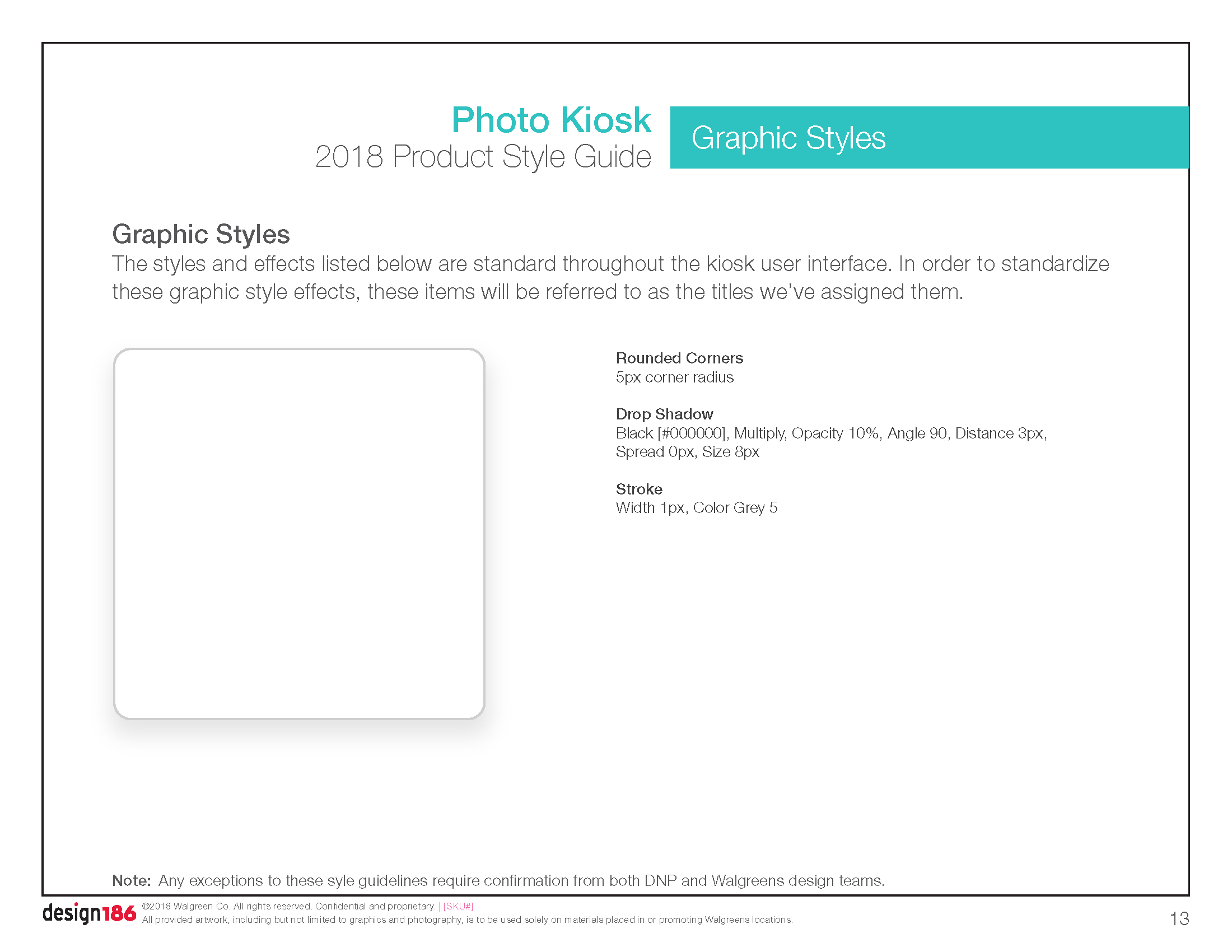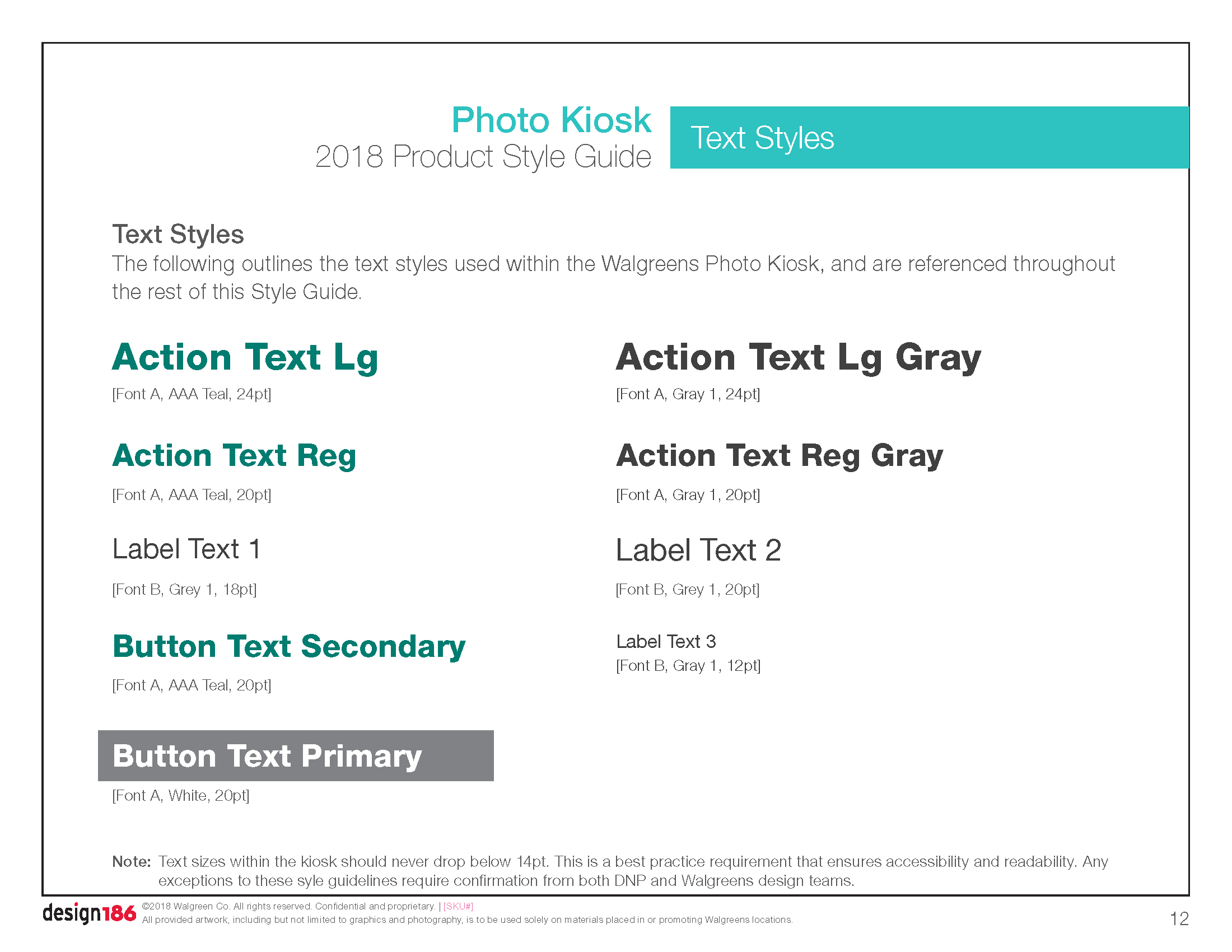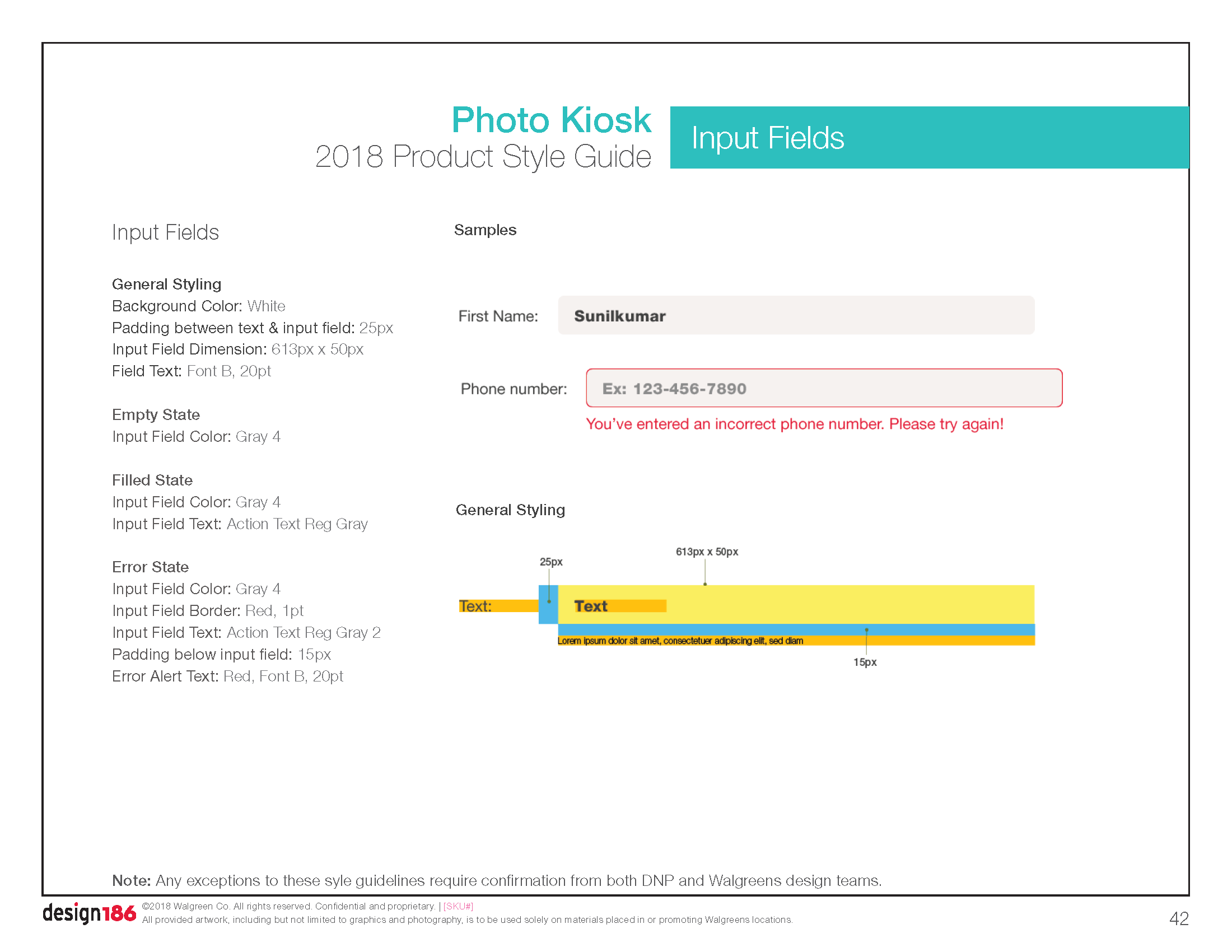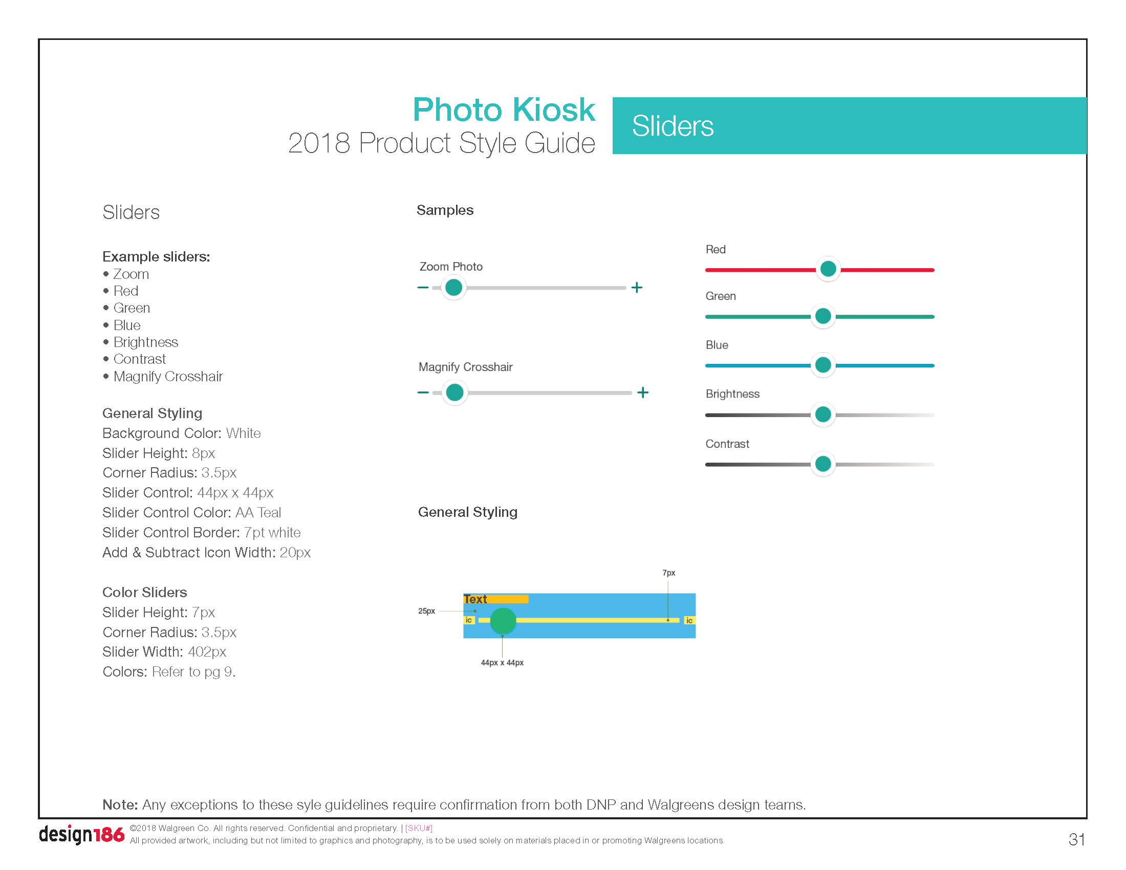 Created a comprehensive style guide to standardize the Photo Kiosk product’s design language across UI elements, voice, and templates.